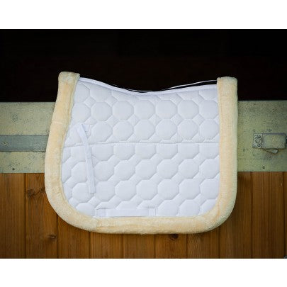 Anatomically engineered with a vented spine design, this fully lined saddle pad delivers superior breathability and fit. The innovative larger Hex quilt pattern conforms precisely to saddle weight, distributing pressure evenly across your horse's back for optimal support. Our premium Lux fleece wool provides exceptional comfort while efficiently managing heat and moisture—outperforming traditional sheepskin with superior washing and drying properties. Features include premium density construction, retaining straps, and girth straps for secure positioning during rigorous activity.